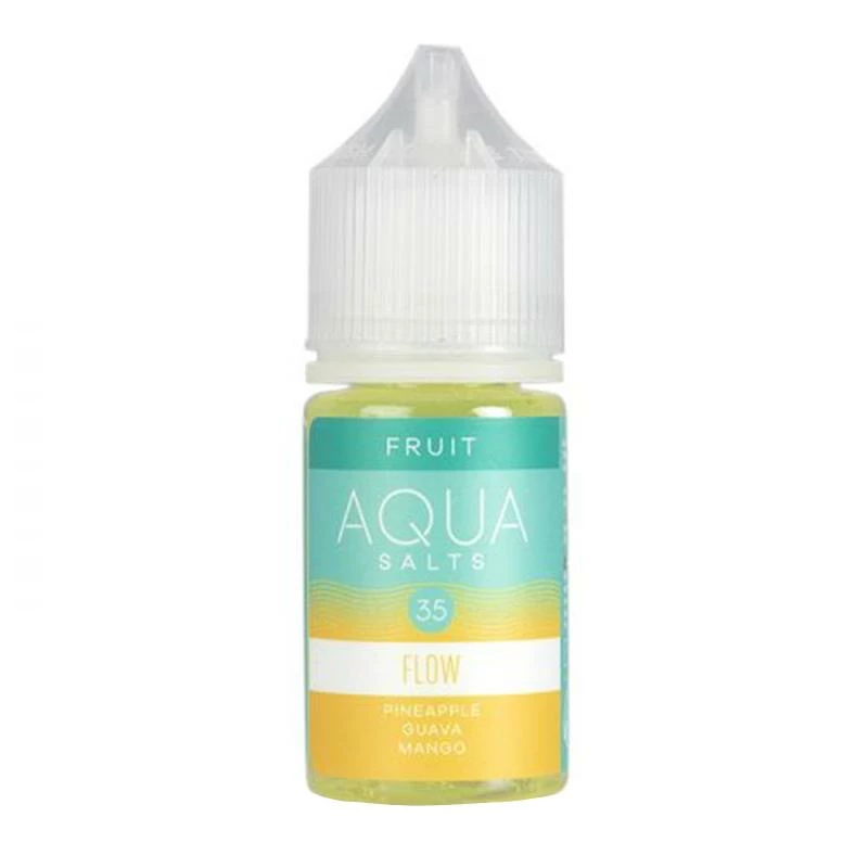 Designed specifically for low-wattage pod systems, Flow E-Liquid by Aqua Salt Synthetic is a fresh fruit-oriented nicotine salt. Its tart pineapple base flavor is complemented by the taste of ripe mangoes that will coat your palate before unlocking the exotic guava flavor on the finish. These three fruit flavors balance incredibly well to create a memorable tropical vaping experience while simultaneously giving a refreshing and juicy break from everyday life. This delicious e-Juice is a tasty fruity addition to any vape juice collection, and comes in inexpensive 30mL bottles at 35mg and 50mg synthetic nicotine salt strength at MistHub.