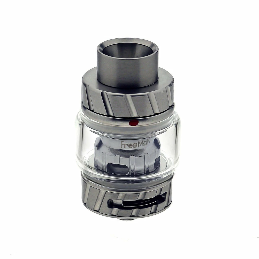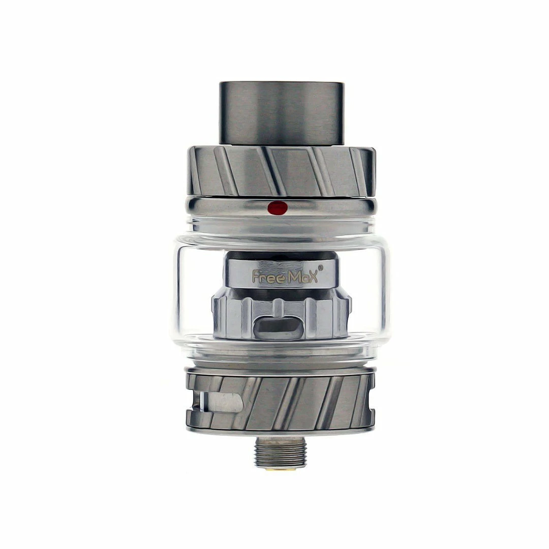 At the top of the tank is an 810 wide-bore Delrin drip tip with a u-shape to help prevent spitback, along with silicone on the inside for easily replacing the drip tip. When youโre ready to fill, simply use Freemaxโs patented slide-to-open top fill method in which you push the side of the top portion to reveal a large filling port. The tank itself holds up to 5mL of vape juice within an extended bubble glass tube. You can control the airflow with every hit you take using the adjustable slots at the base of the tank.