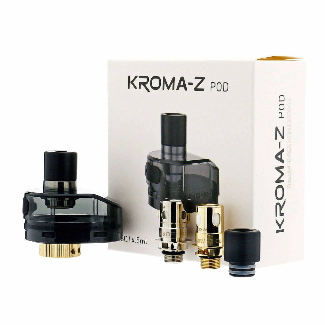 The Innokin Kroma-Z Replacement Cartridge is designed for the all new Innokin Kroma-Z Vape Pod System. This pod cartridge integrates a comfortable removable mouthpiece and holds up to 4.5mL of traditional e-juice or nicotine salt e-liquid. Easily fill the pod cartridge with e-liquid via the convenient side fill port that can be accessed whether or not the cartridge is attached to the mod. Simply lift the rubber plug on the side of the liquid chamber, insert your favorite e-liquid, and begin filling. Then firmly reseal the fill port, and you’re ready to vape. This pod cartridge attaches seamlessly to the rest of the device via a strong magnetic connection. The removable drip tip at the top of the pod promotes comfort and versatility with every vape. Whether you prefer multiple cartridges for different flavors or you simply need a new pod cartridge, choose the Innokin Kroma-Z Replacement Cartridge for your Innokin Kroma-Z.