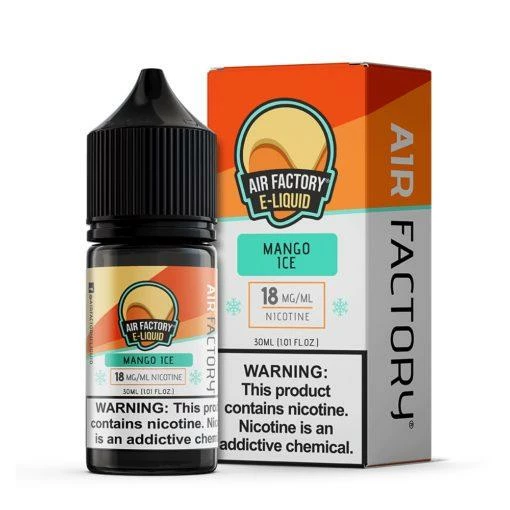 When you wish you were sipping a fruit smoothie in a seaside hammock, Mango Ice E-Juice by Air Factory Salt is the next best thing. On the inhale, youโll taste fresh golden mango, and on the exhale, icy menthol swoops in to take this tropical bonanza to the next level. This crisp and refreshing vape juice will fill your low-wattage vape tank with nothing short of high-quality ingredients and authentic flavor. Donโt let bad weather keep you from taking a little vacation with your vape, so try Mango Ice E-Juice by Air Factory Salt today and treat yourself to an oasis of flavor.