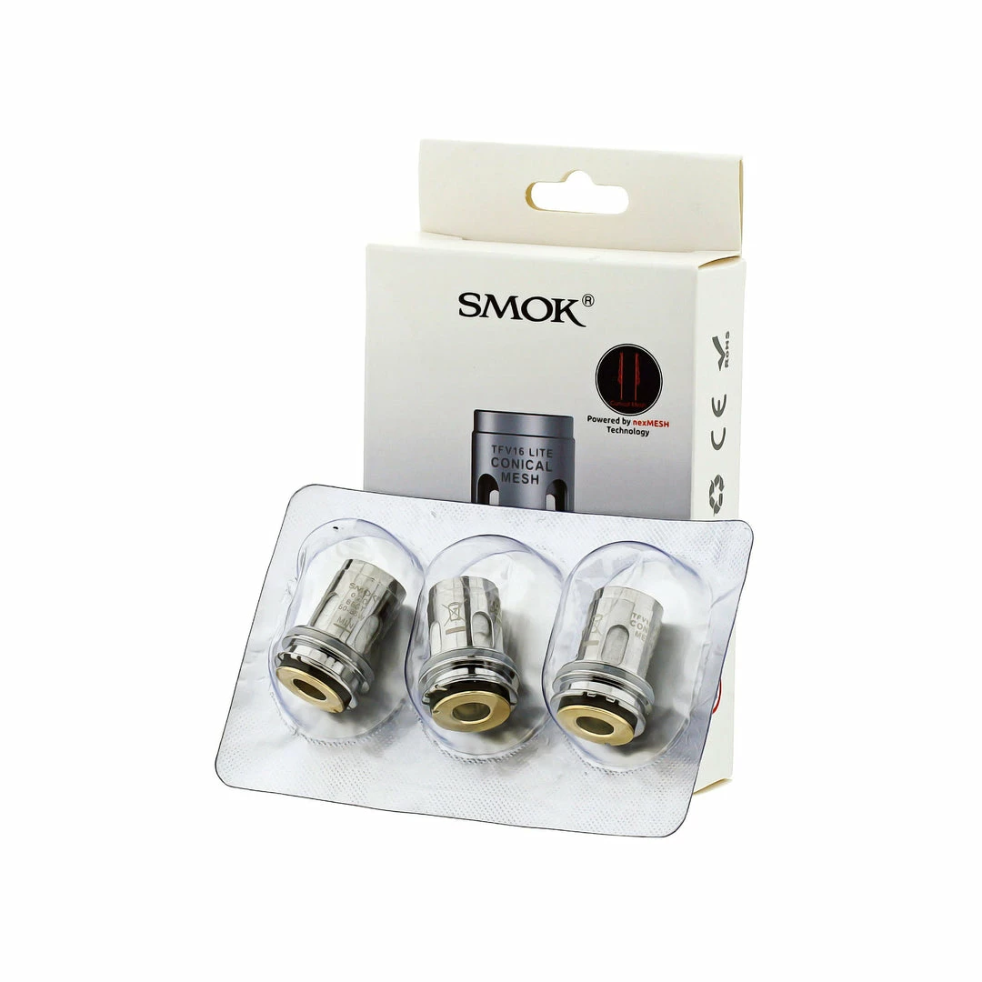 The TFV16 Lite Conical Mesh 0.2 ohm Coil, powered by nexMesh, is the pre-installed coil in your TFV16 Lite Tank. Rated for use between 60 and 85W, this coil is made of Kanthal and offers a powerful, warm throat hit while delivering massive vapor clouds and delicious flavor. Its unique conical structure heats up fast and efficiently, so you won’t have to wait long for another vape.