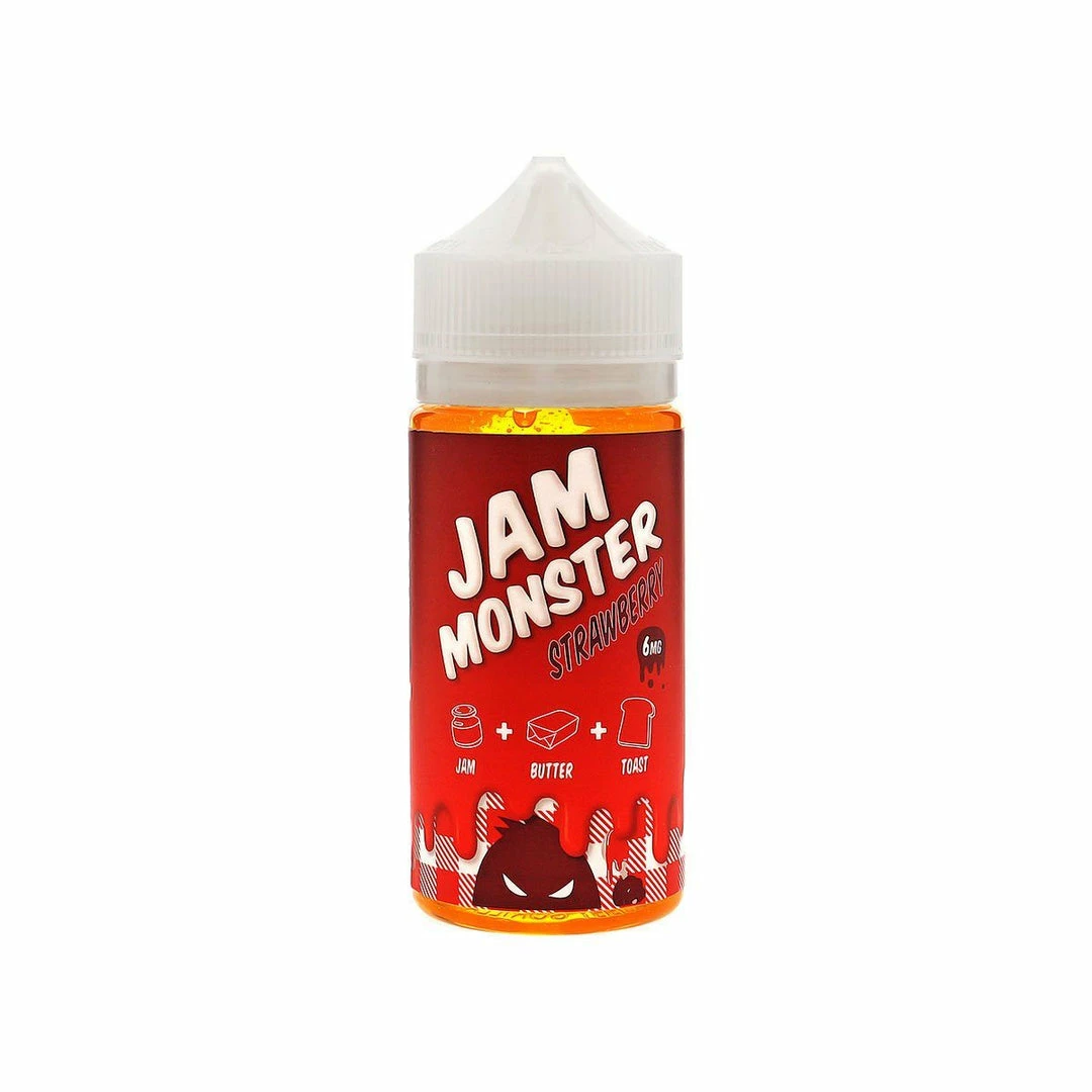 Strawberry E-Juice 100mL by Jam Monster offers a delicious Strawberry breakfast treat that should be in every vapers all-day-vape rotation! Strawberry E-Juice is a delicious mixture of Jam Monsterโs award-winning Strawberry Jam that utilizes perfectly ripened Strawberries to deliver an unmistakable Strawberry sensation. During the exhale, subtle undertones of a warm and creamy Butter flavor shine through, toning this sugary sweet-treat down a bit for a truly unique flavor-profile.