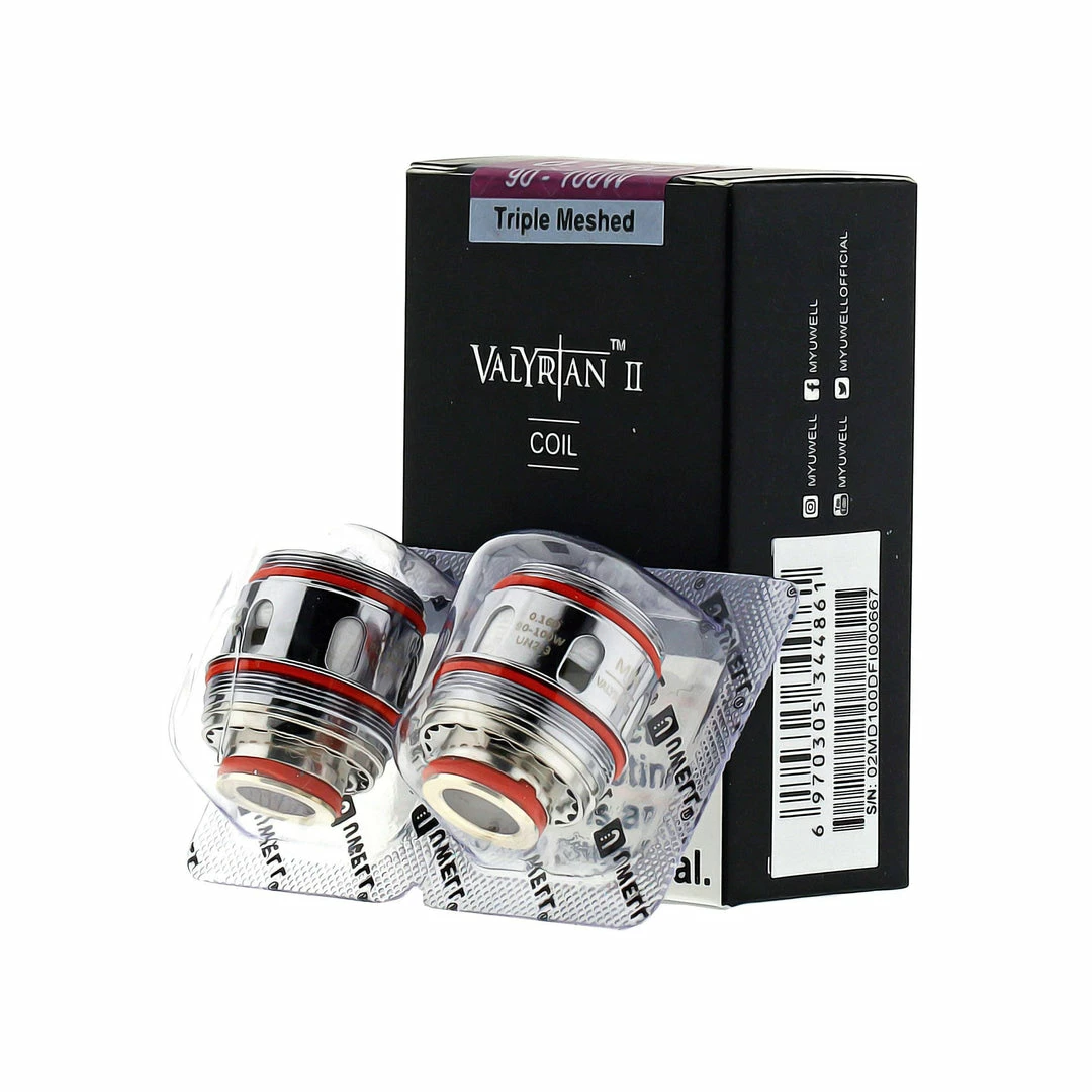 When you’re ready to replace coils for your Uwell Valyrian II Sub-Ohm Tank, the Uwell Valyrian II Replacement Coils are designed to give you the most satisfying vape experience. Uwell’s UN2 Mesh Coil Series are made of Kanthal and 100% Organic Cotton Fiber with a honeycombed mesh design (except for the Quadruple Coil), a combination of materials that warrants a large heating surface and overall even heating for a great vape. Incorporated in these coils is Uwell’s patented Self-Cleaning technology, which takes any condensation formed at the bottom of the atomizer head and reabsorbs it into the coil. This system helps prevent any leaking from over-wicking or condensation buildup. The Valyrian II Replacement Coils also have Uwell’s patented Pro Flavor Core Optimization System (Pro-FOCS) that uses already drawn in air and further encumbers it with more flavor to saturate your taste buds and leave you tasting flavor several seconds after taking a hit. Uwell offers these coils in Single, Dual, Triple, and Quadruple options with their respective wattages and resistances, promoting a customizable vape experience for all vapers. The intricate design and innovative technology of the Uwell Valyrian II Replacement Coils make them the best choice for your Valyrian II Sub-Ohm Tank.