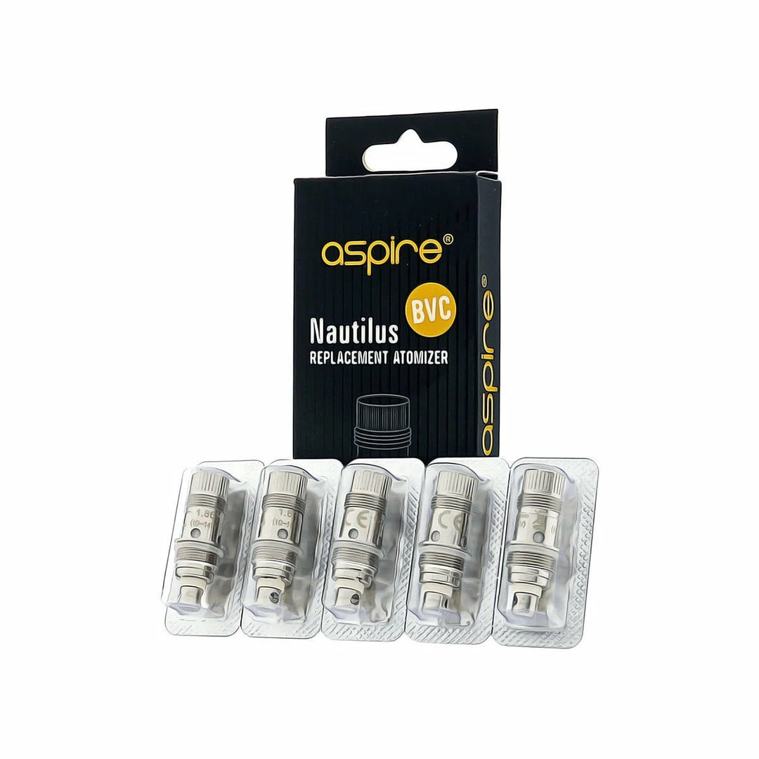 Aspire Nautilus BVC Replacement Coil Heads come in a pack of 5 or individually. The all new Bottom Vertical Coil technology features no-wick design and offers much longer life-cycle, and better vapor production. Simply unscrew the bottom of your Nautilus Tank, then unscrew the replaceable coil head, screw the new one in and you are ready to vape in style. These heads produce tons of vapor, do not leak or gurgle, and combined with the amazing adjustable airflow control valve of the Nautilus Tank produce amazing flavor.
