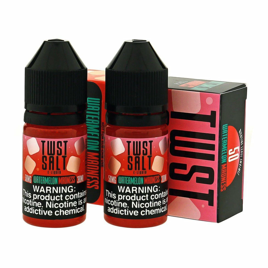 Watch out because Watermelon Madness E-Liquid by TWST Salts has just entered your pod mod, and itโs about to get a little wild. Coming to you through the power of nicotine salts, this is one insanely good watermelon flavor like no other, delivering a crisp and clean throat hit that satisfies your palate completely. This juicy watermelon e-liquid tastes just like sucking on a watermelon flavored hard candy or chewing on sticky sweet watermelon bubblegum, simple pleasures that we all enjoy. Like savoring every bite of a big slice of thirst-quenching watermelon, youโll savor every vape of this delicious watermelon e-liquid and keep coming back for more. Take one hit of Watermelon Madness E-Liquid by TWST Salts, and it will instantly become your new summertime all day vape.